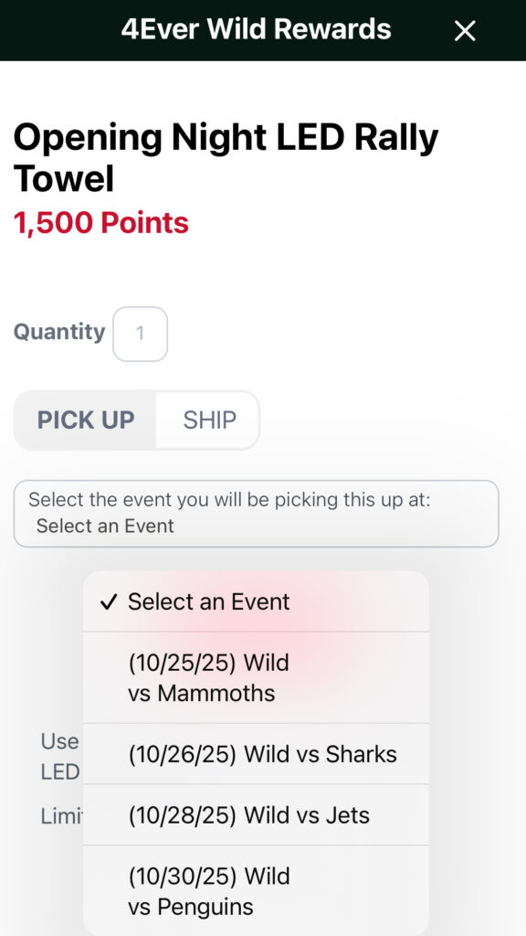 The Minnesota Wild are giving fans even more control over their rewards experience. Now, when fans claim a prize in their Rewards Store, they can simply select which home game they’ll attend to pick it up.